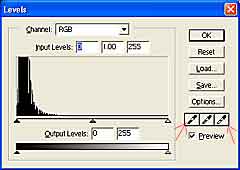 adjust the black and white level using the colorpicker - select the black